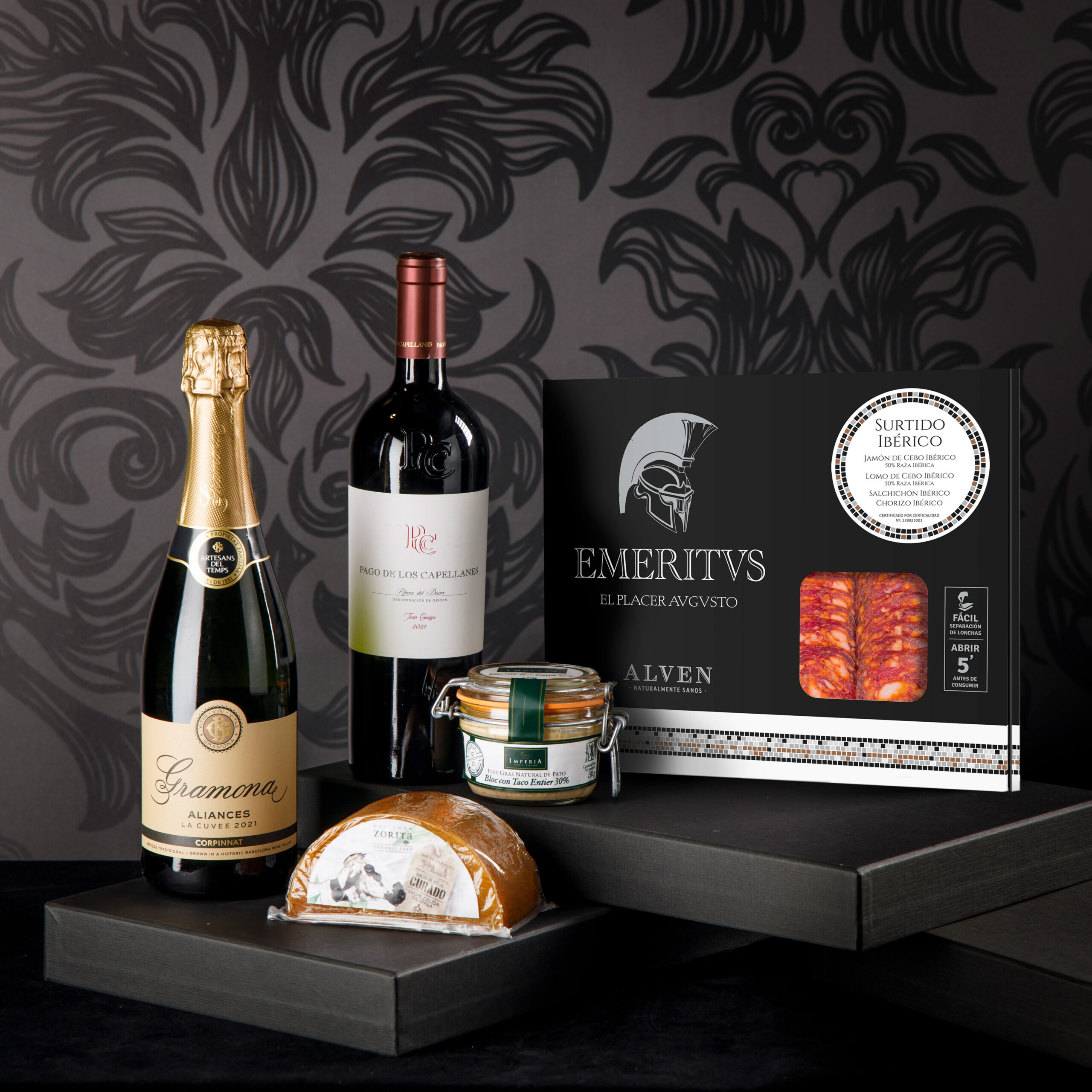 1 Maletí Embotits Ibèrics Assortits 6 u Pernil Ibèric + 4 u Xoriço Ibèric + 4 Llonganissa Ibèrica +2 Lloms ibèrics d’enceball EMERITVS